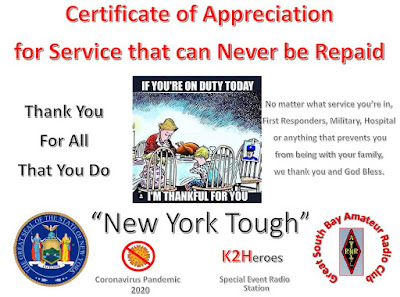 That’s where you come into the picture; By joining us in activating K2H (with the suffix of your NY county appended, for example, K2H/SUF for Suffolk), you will be able to help everyone say thanks to those who are helping guide us through an unprecedented crisis – whether by keeping watch on quarantine enforcement, keeping food store shelves well-stocked or tending to the sick.